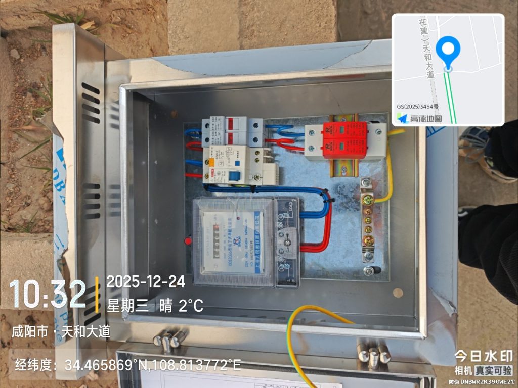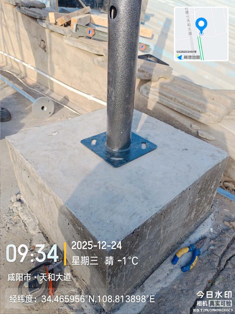立杆接地,安装电箱